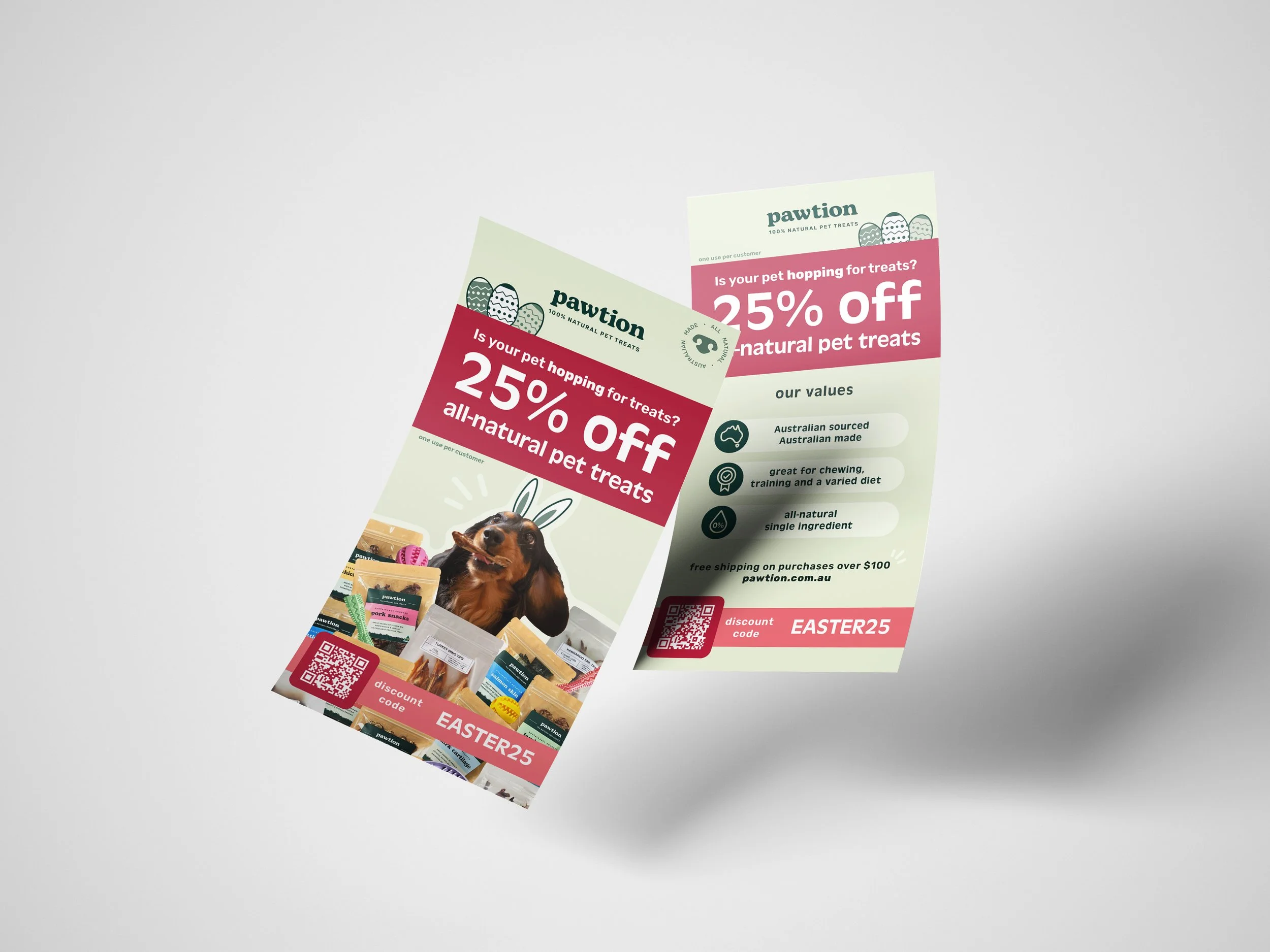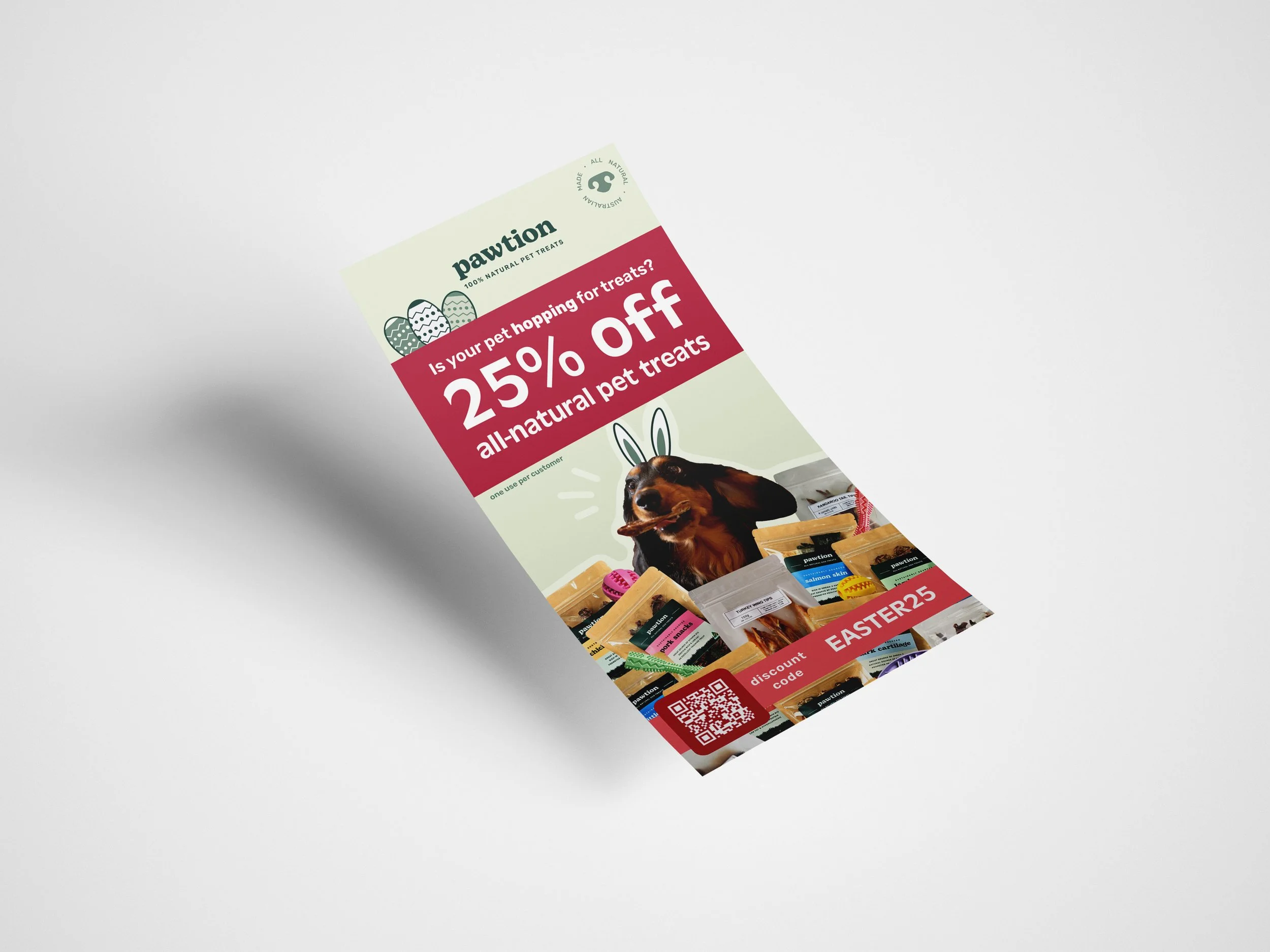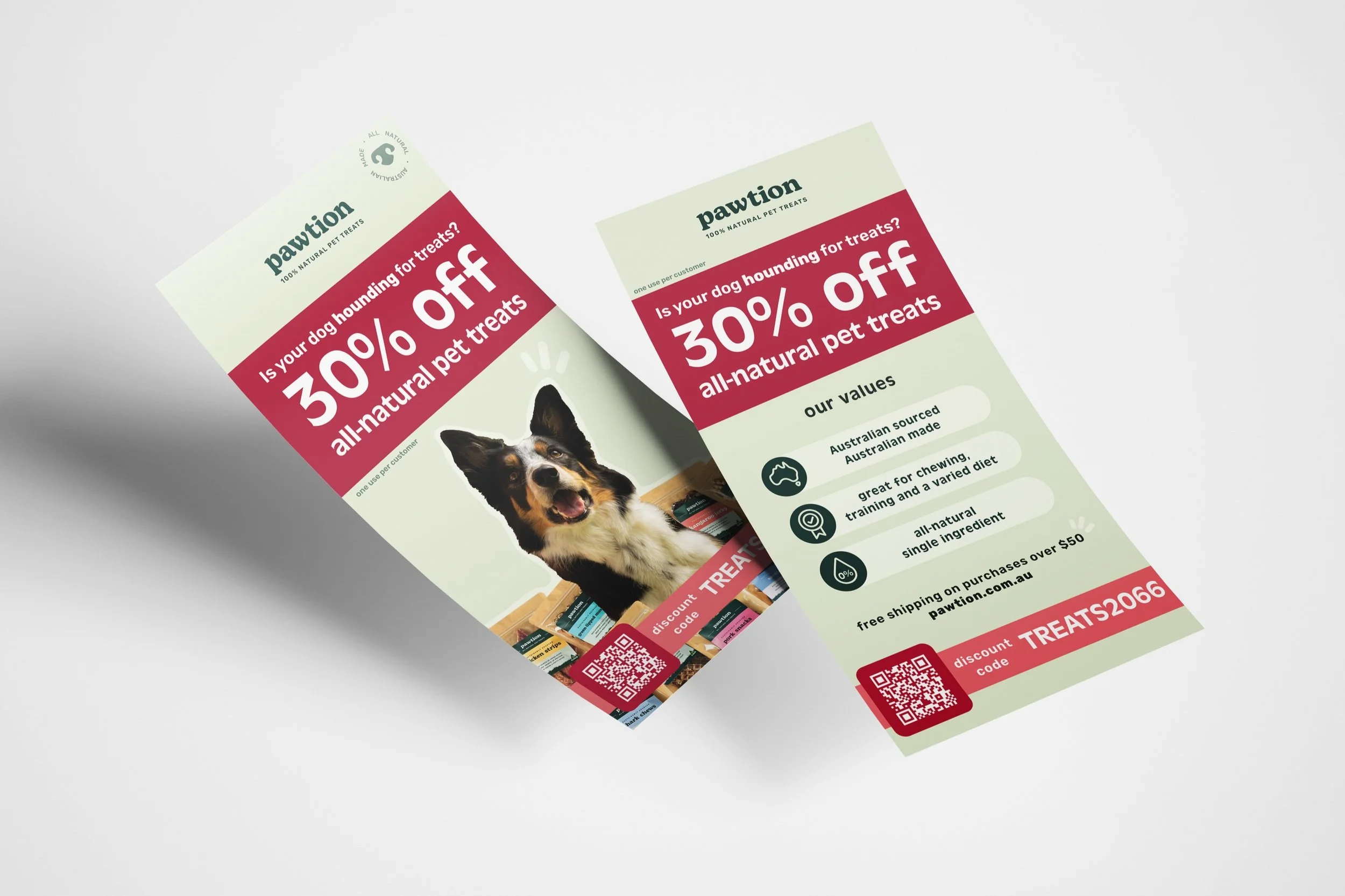 A mail flyer is used to distribute advertisement material through postal channels. The purpose of this flyer was to make Pawtion visible to new customers and offer existing customers a considerable discount if they shopped on the Pawtion online store.